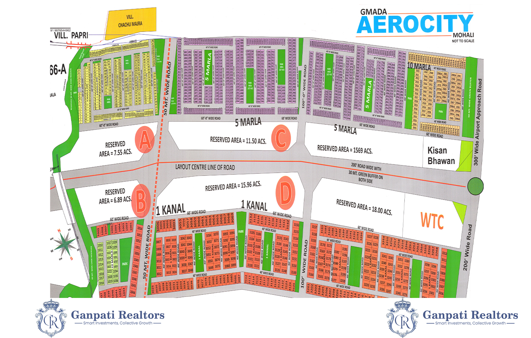 Aerocity Mohali is comprised of approximately 5000 plots ranging between 125 – 500 sq, yards reserved for commercial, industrial and residential purposes situated on the both sides of the road adjoining directly towards Chandigarh International Airport.