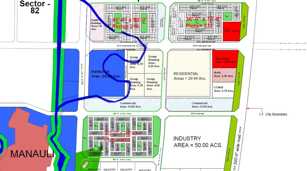 GMADA IT City is specifically designed for IT industries. The areas covering Sectors 66, 82, 83 and 101 and situated on 200 feet wide road is renowned by the name IT City Mohali. This IT City project includes residential plots, commercial plots, and industrial plots. It is comprised of 1688 acres of land out of which 400 acres of land sets up for industrial area, 1100 acres of land is reserved for residential plots as well as the remaining 188 acres sets out for commercial establishments.